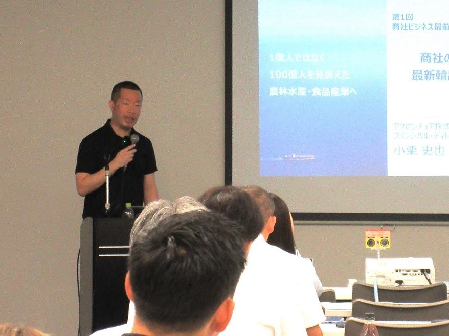 当セミナーは2部構成で、小栗 史也 氏(アクセンチュア株式会社)から「商社の役割と最新輸出トレンド」、森川 竜典 氏(株式会社イチゴラス)から「商社との関わり方」をテーマに講演いただきました。