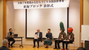 東海農政局は、令和7年11月27日(木曜日)名古屋能楽堂において、令和7年度豊かなむらづくり全国表彰事業(東海ブロック)表彰式および事例発表会を開催し、受賞団体、むらづくり審査会委員、県・市の担当者等が出席しました。